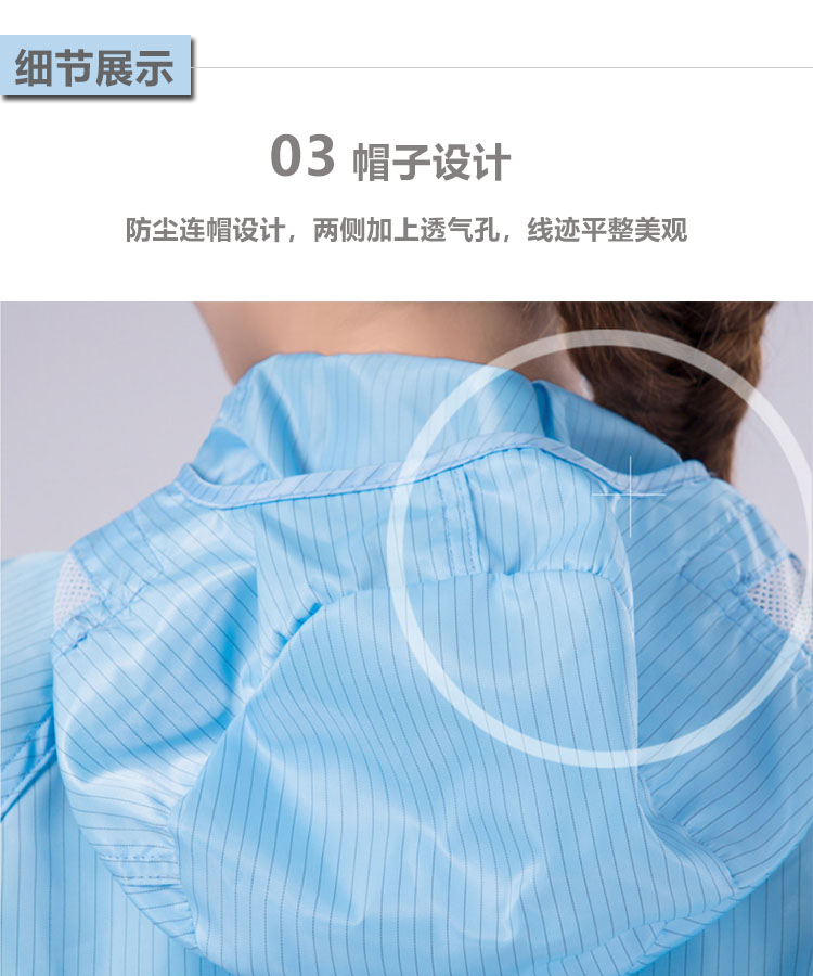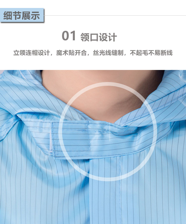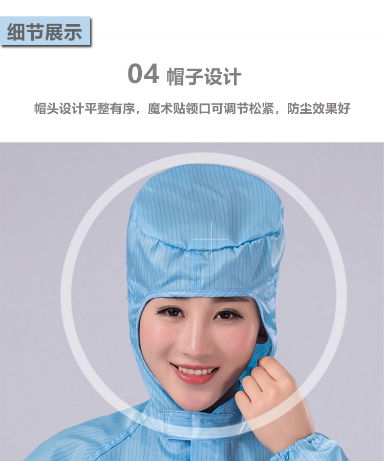 防靜電無塵連體服是由專業(yè)的防靜電面料制作,采用滌綸長絲與高性能導(dǎo)電纖維編織而成,具有高效、永久的防靜電、防塵性能,能有效釋放人體靜電荷,從而滿足高級(jí)別無塵環(huán)境的要求。廣泛應(yīng)用于電子電器、食品、生物制藥、實(shí)驗(yàn)室等無塵車間及產(chǎn)線。