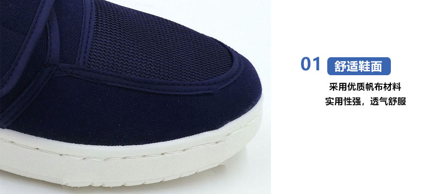3、鞋面采用帆布面料,舒適透氣,防塵效果好,易于清洗;