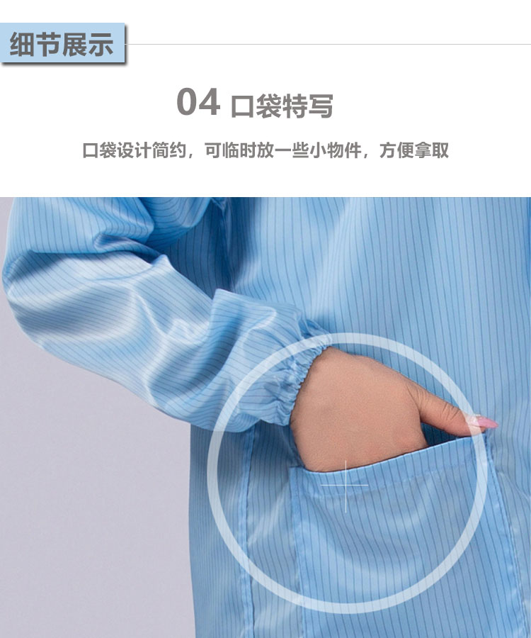 防靜電無(wú)塵大褂是由專業(yè)的防靜電面料制作,采用滌綸長(zhǎng)絲與高性能導(dǎo)電纖維編織而成,具有高效、永久的防靜電、防塵性能,能有效釋放人體靜電荷,從而滿足高級(jí)別無(wú)塵環(huán)境的要求。廣泛應(yīng)用于電子電器、儀器儀表、食品、生物制藥、實(shí)驗(yàn)室等無(wú)塵車間及產(chǎn)線。
