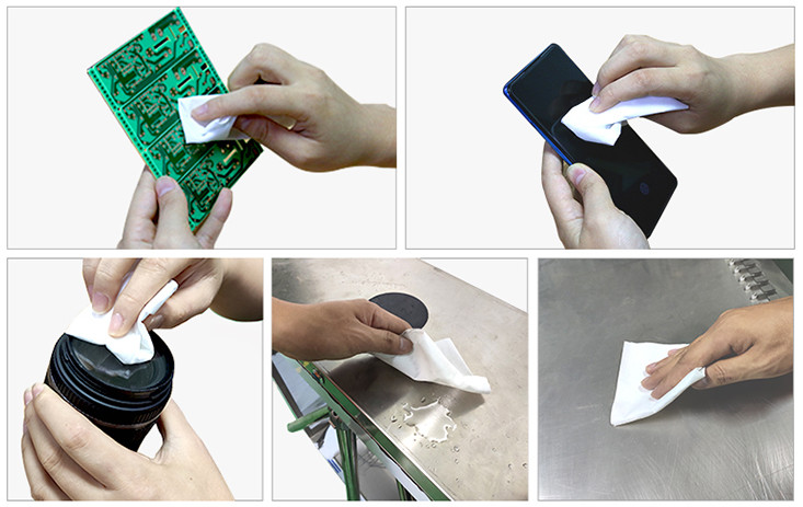化學(xué)粘合的無塵紙經(jīng)常用于半導(dǎo)體裝配、航空制造及維修、實(shí)驗(yàn)室、電子行業(yè)、電腦組裝、光學(xué)儀器制造、LCD液晶顯示、精密儀器、光學(xué)產(chǎn)品、航空工業(yè),及線路板生產(chǎn)線等精密行業(yè),適用于工業(yè)的原因是因?yàn)槠鋬?yōu)良的除塵效果,配合有防靜電功能,高效吸水性,柔軟不會(huì)損傷物體表面,適合精密作業(yè)。
