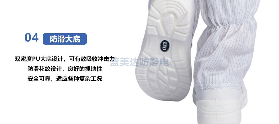 3、防靜電大底:專業(yè)防滑大底設計,符合防靜電要求標準電阻值;