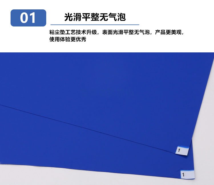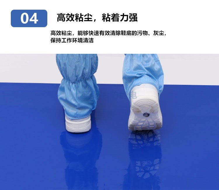 粘塵墊又稱粘塵地墊、粘塵地板膠,采用優(yōu)質(zhì)低密度聚乙烯材料和環(huán)保型壓敏水溶性粘合劑經(jīng)過特殊工藝復(fù)合而成,能使粘塵墊每層表面粘性均勻,不掉膠,無氣味,環(huán)保無毒,能快速有效清除運(yùn)輸工具車輪和鞋底攜帶的灰塵,保持環(huán)境清潔。粘塵墊有30層,每層之間左上角或者右上角都有1-30或者30-1的數(shù)字標(biāo)簽,以便于更換。主要應(yīng)用于微電子、半導(dǎo)體、生物制藥,醫(yī)療器械、食品加工和醫(yī)院等各行業(yè)。