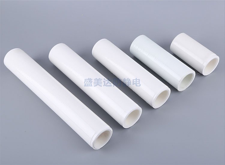 2、PE膜和筒芯組成的粘塵滾筒,是由不干膠涂層外翻方式均勻的卷在筒芯上,每隔一段固定的長度就有一條預裁線,方便使用過程中的更換,若滾筒變臟不能再吸附污染物時,沿著預裁線撕掉污染層就可以了。