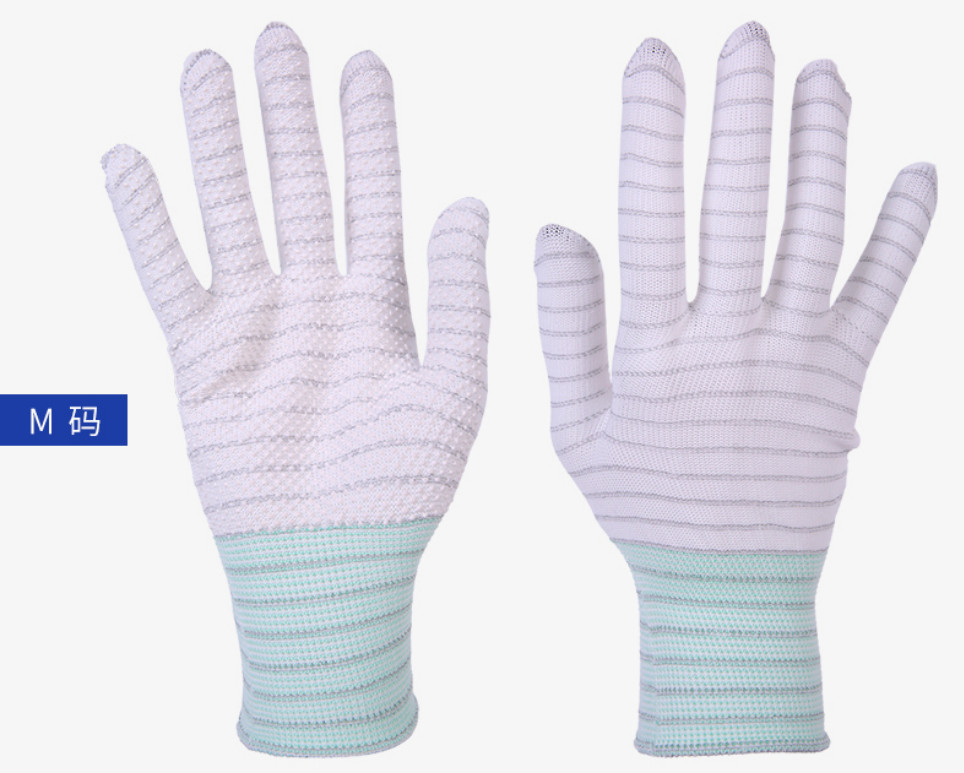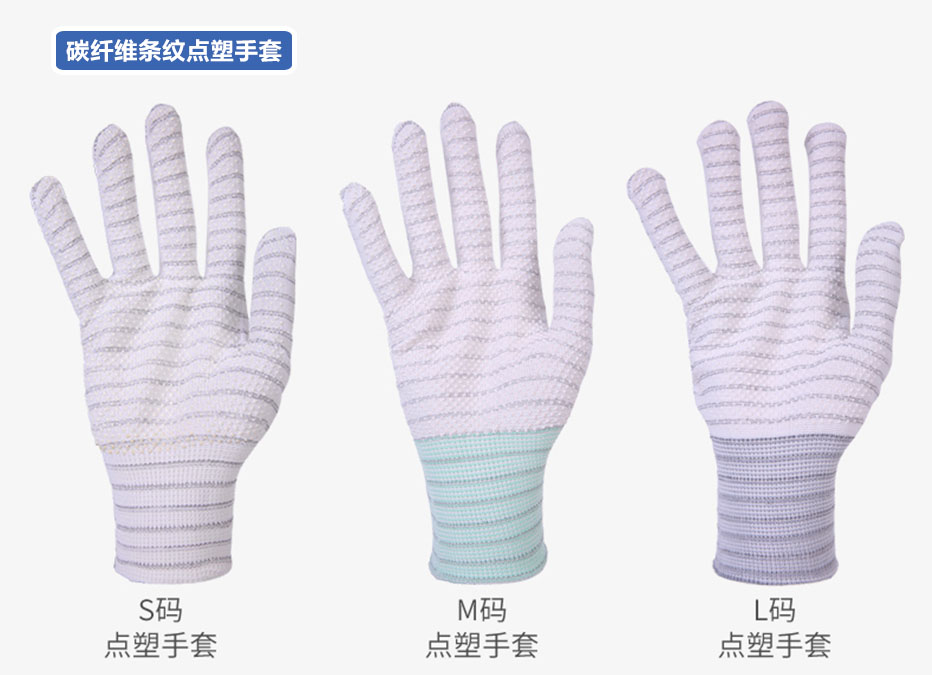產(chǎn)品名稱:碳纖維條紋點塑防靜電手套