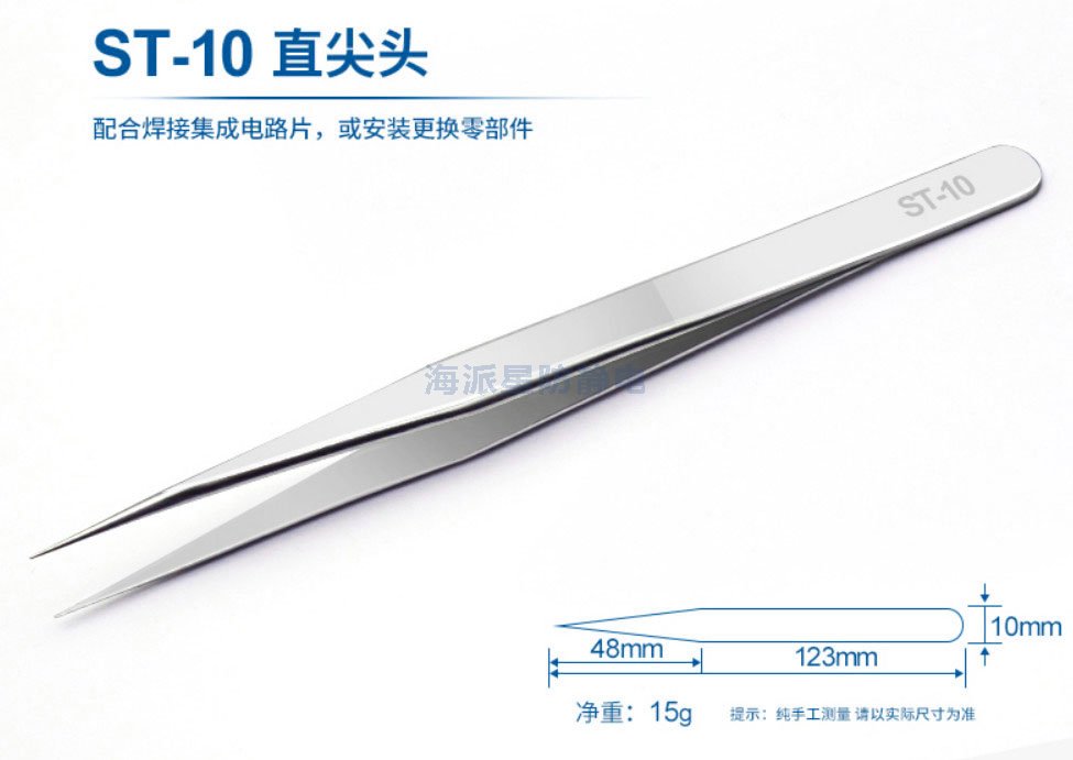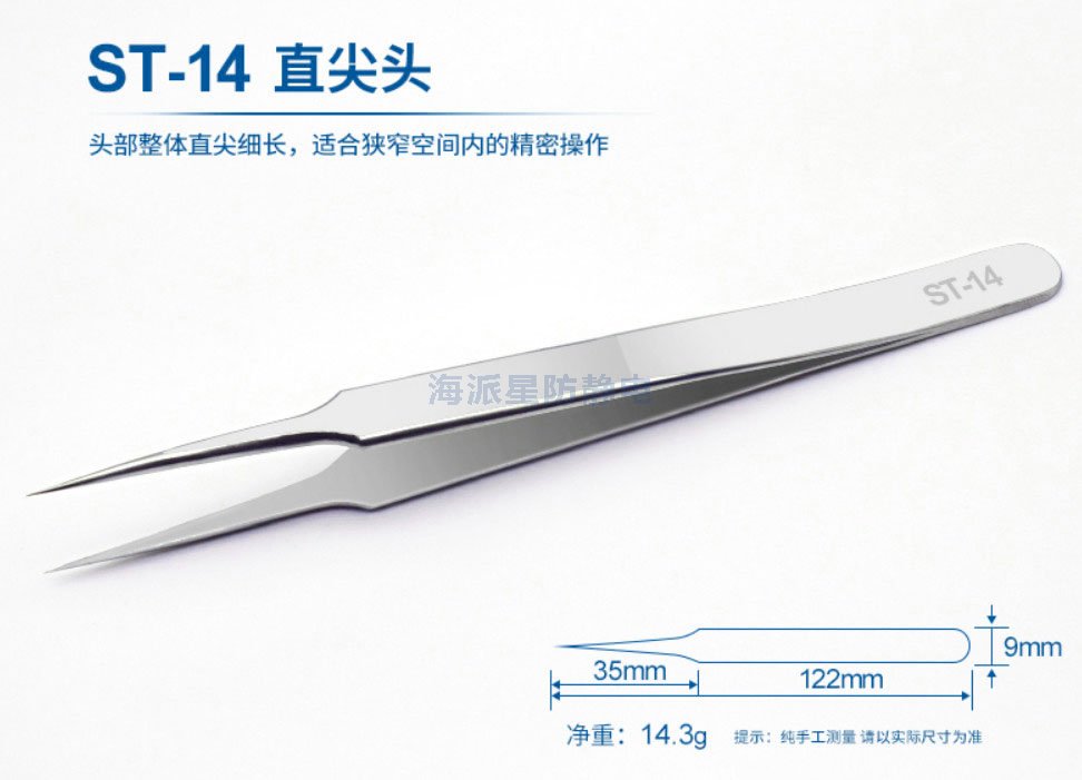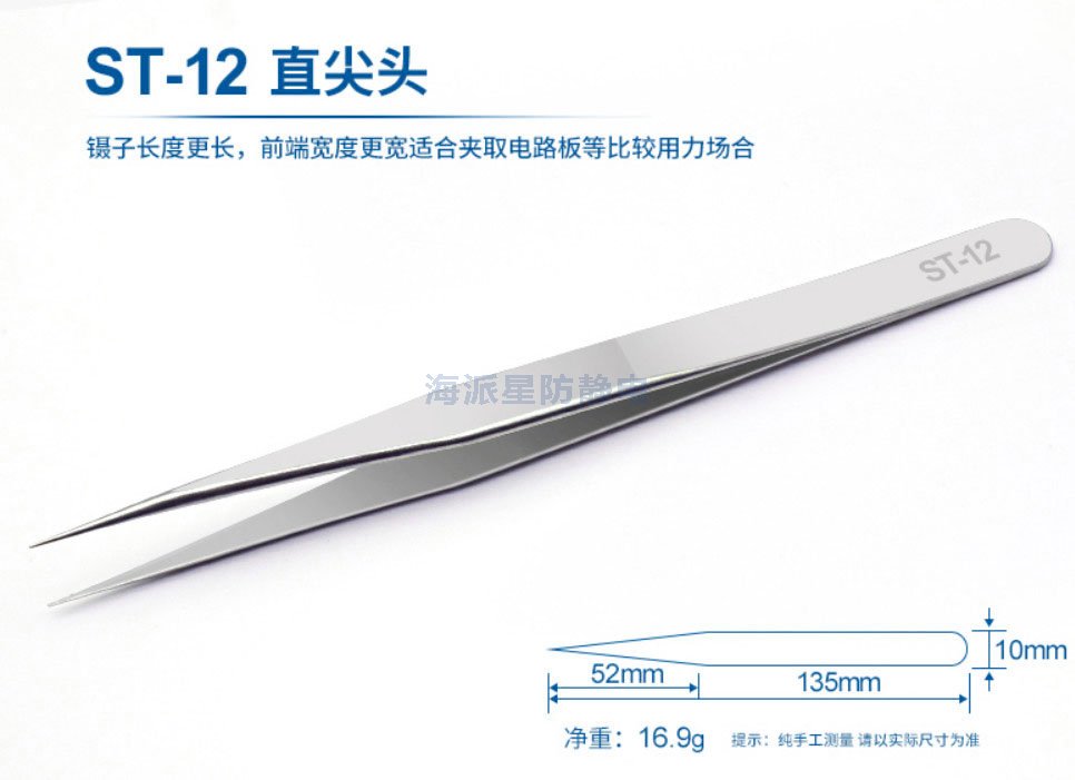 | ST-12 | 鑷子長(zhǎng)度更長(zhǎng),前端寬度更寬,適合夾取電路板等比較用力場(chǎng)合 | ||||||