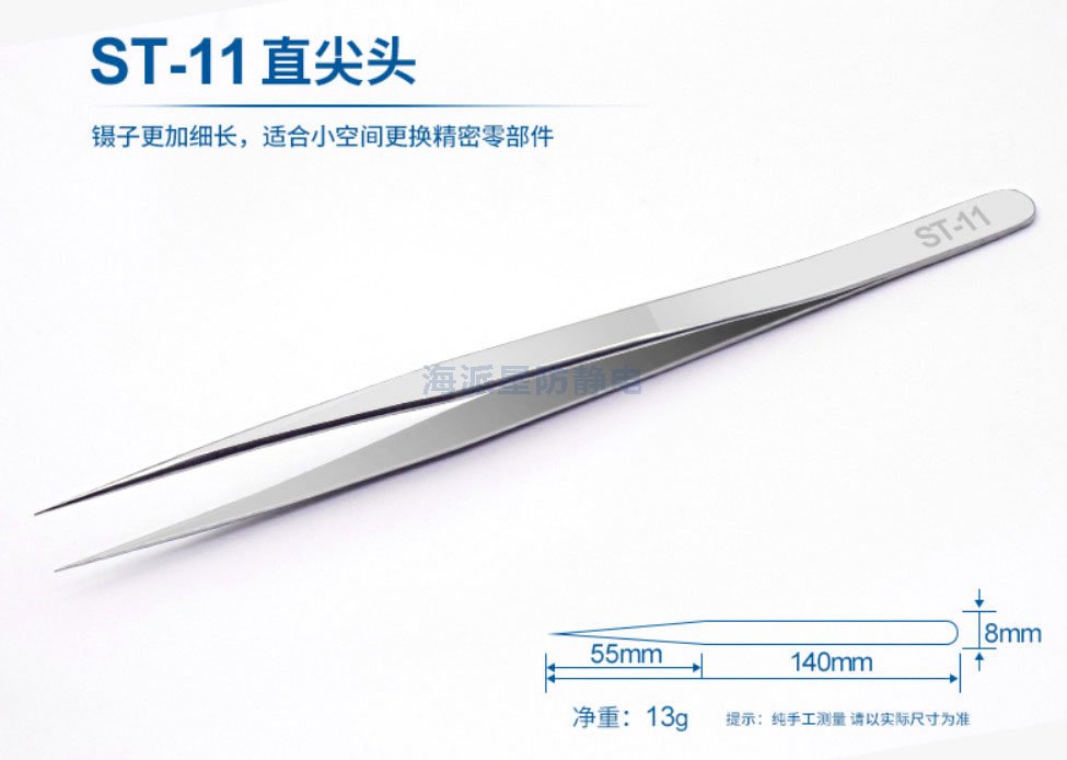 | ST-11 | 鑷子更加細(xì)長(zhǎng),適用于精密電子部件中操作 | ||||||
