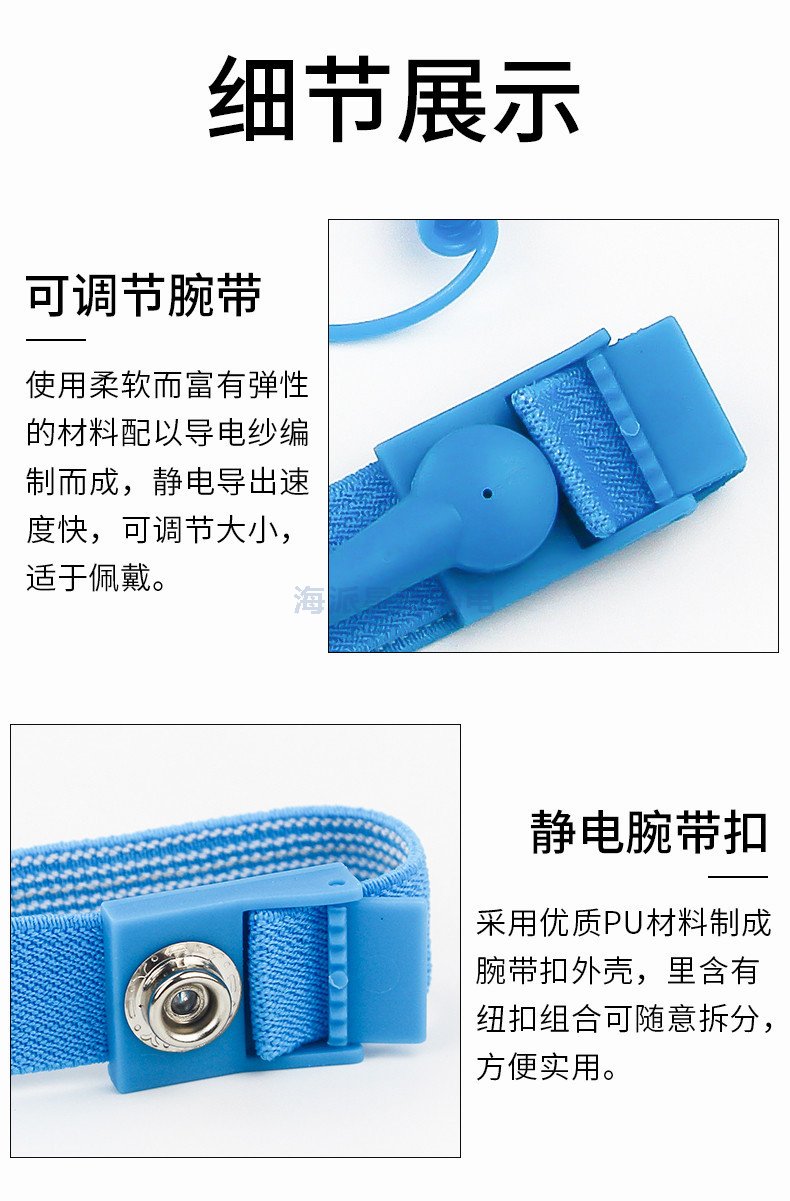 防靜電手腕帶,也叫防靜電手環(huán),是一種配戴于人體手腕上,泄放人體聚積靜電電荷的器件。它分為有線型、無線型,有金屬環(huán)和橡筋導(dǎo)電絲混編環(huán)。它由防靜電松緊帶、活動按扣、彈簧軟線、保護(hù)電阻及夾頭組成,松緊帶的內(nèi)層用防靜電紗線編織,外層用普通紗線編織,可有效保護(hù)零阻件,免于受靜電之干擾,用以泄放人體的靜電。