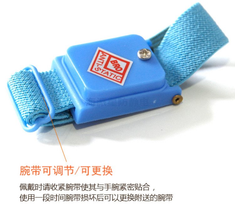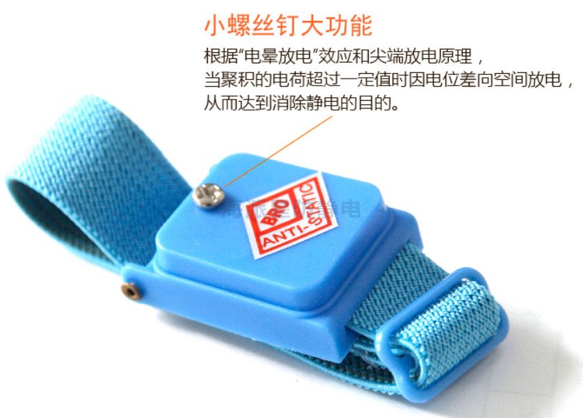 防靜電手腕帶,也叫防靜電手環(huán),是一種配戴于人體手腕上,泄放人體聚積靜電電荷的器件。它分為有線型、無線型,有金屬環(huán)和橡筋導(dǎo)電絲混編環(huán)。它由防靜電松緊帶、活動按扣、彈簧軟線、保護(hù)電阻及夾頭組成,松緊帶的內(nèi)層用防靜電紗線編織,外層用普通紗線編織,可有效保護(hù)零阻件,免于受靜電之干擾,用以泄放人體的靜電。